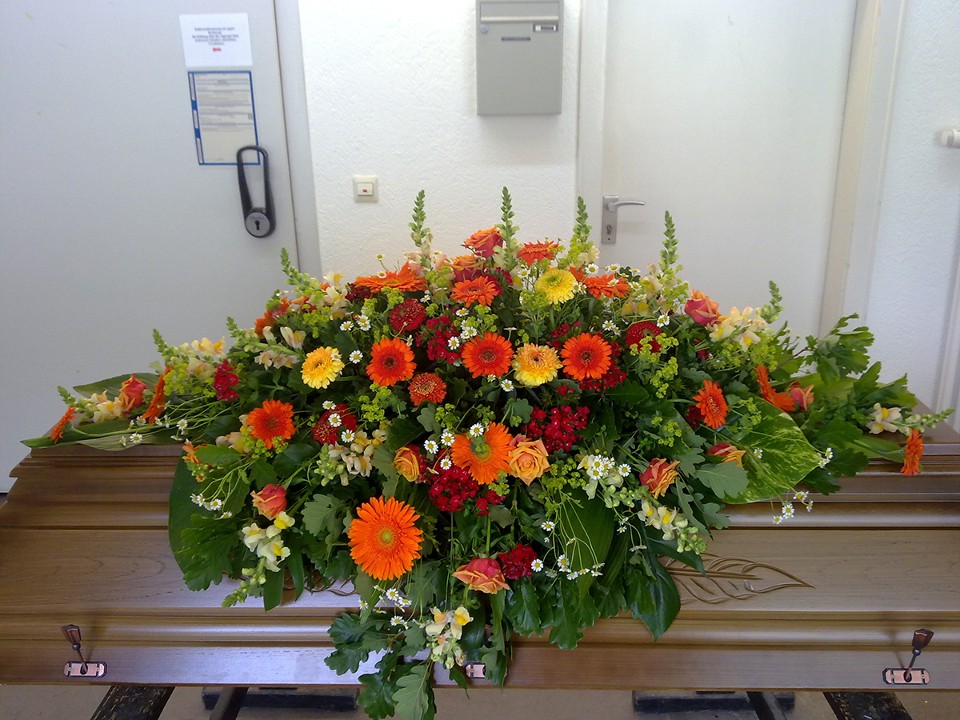 Blumen wirken tröstend und bilden den passenden, feierlichen Rahmen für die Bestattung einer geliebten Person. Wir gestalten floristischen Sarg- und Urnenschmuck, Dekoration für die Trauerfeier, Kränze und Gestecke.