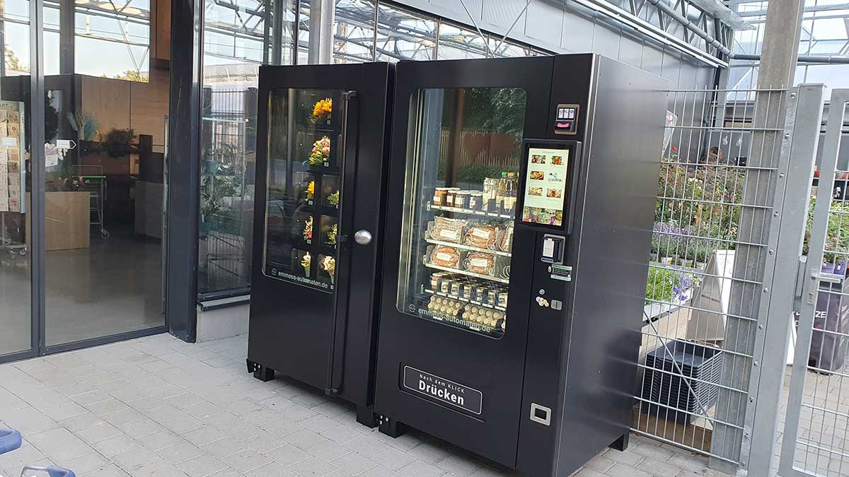 Unser neuer Automat ist doppelt toll: Sie erhalten wie bisher auch im linken Teil Sträuße und Pflanzen als Geschenke für Kurzentschlossene.